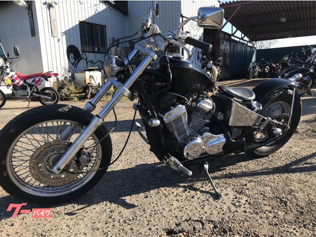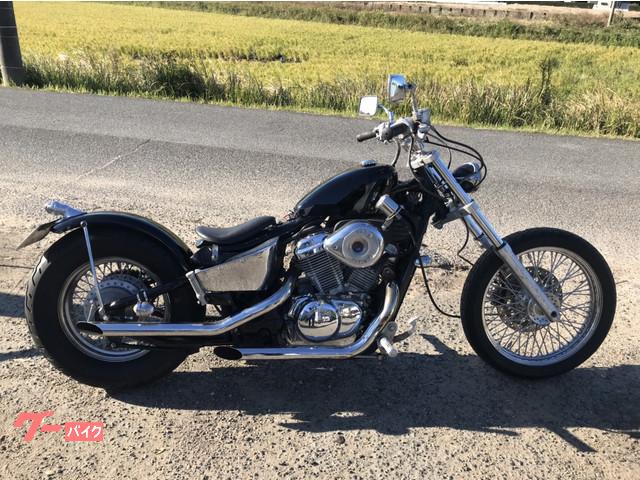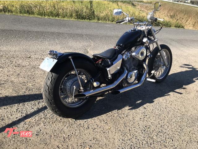 ローアンドロングのスティードカスタムです。スポーツスタータンク、トリプルツリー、フラットフェンダーで決まってます。タンクやフェンダーはニューペイントのブラックです。テールランプはバードゲージ新品、各所整備もしっかり致しますのでアメリカンライフを楽しめる事間違いありません。是非見に来て下さい。